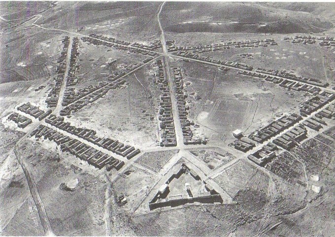 Village de regroupement ou "Nouveau Village" de Sidi Brouni, au sud de Bordj Okhriss, secteur d'Aumale, actuellement Sour El Ghouzlane, Algérie, 1960. Photo Marc Garanger