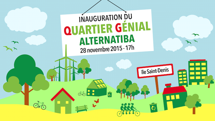 à 17 h, démarrera l'inauguration de la base arrière du mouvement Alternatiba pendant la COP 21, baptisée le « Quartier génial ». Au programme, interventions de personnalités comme Jean Jouzel ou Denis Cheissoux et visite du gymnase entièrement réaménagé à la sauce Alternatiba.