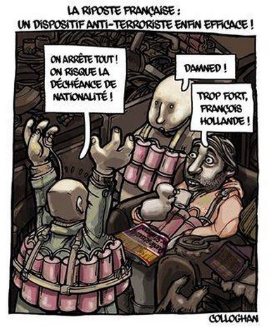 Je ne parierai pas spontanément là d'où je suis, sur l'effet positif et donc collectif de ce type de dégrisement pour les personnes concernées. Les gens qui bossent sur « les chemins de la radicalisation » insistent sur son caractère... de chemin. C'est une évolution progressive, par petites touches. La rupture que constitue le passage à l'acte n'est que l'aboutissement de tous ces petits pas, parfois anodins, de toutes ces petites décisions antérieures dictées par pleins de choses... Comme le fait par exemple, qu'on ne se sente pas et qu'on ne puisse plus se sentir chez soi, ici. Quoiqu'on dise et quoiqu'on fasse. Au prochain taré français (même temporairement) qui se fera exploser dans nos rues revenant de je ne sais où, il faudra s'interroger sur la mèche qu'aura peut-être constituée ce symbole. Jean Marie Le Pen traitait les arabes de "Français de papier". Grâce à Hollande nous le sommes un peu plus. Je crois que là, on atteint un point dont il nous sera difficile de revenir indemnes. Demain, revenir sur l'imaginaire que produisent ces symboles a fortiori vu le contexte actuel sera compliqué. À moins de tordre le bâton dans l'autre sens. Aujourd'hui, dans l'imaginaire collectif, plus qu'hier et moins que demain il y aura des Français sous conditions et d'autres non. Il y aura une catégorie de sous citoyens de plus.