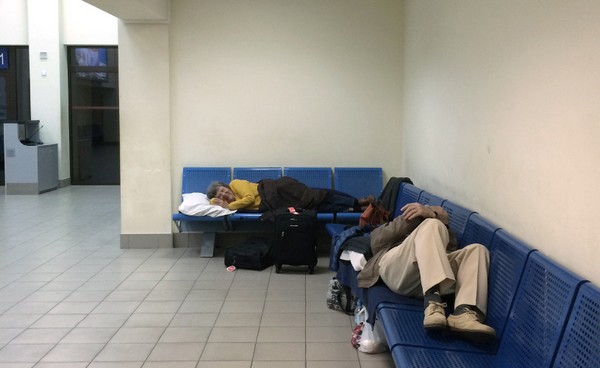 Mais, il semble que la présence, le témoignage d'étrangers soient redoutés puisque visiblement nous étions attendus. Dès le contrôle des passeports, un militaire nous entraînait dans un local où nous avons subi un interrogatoire de 2 h1/2, à l'issue duquel il nous a été signifié qu'il nous était interdit de rejoindre nos amis ukrainiens qui nous attendaient à quelques pas de là. Pour clore cet interrogatoire, nous devions signer un procès verbal entièrement rédigé en Ukrainien, ce que nous avons catégoriquement refusé de faire. Nos bagages ont été contrôlés. Le préposé à cette opération prétendait confisquer les cadeaux que nous avions amenés. Notre protestation fut véhémente. C'est lorsque que nous avons évoqué une plainte auprès de notre ambassade que les cadeaux ont réintégré nos valises. Non seulement il nous était interdit de pénétrer en territoire ukrainien, mais nos passeports nous étaient confisqués et nous mêmes étions retenus et placés dans un local de l'aéroport sous surveillance militaire. Nous avons dû passer la nuit dans des conditions très rudimentaires, allongés sur des banquettes en fer avec deux oreillers et deux couvertures pour quatre. Le lendemain nous étions reconduits sous escorte à un avion en partance pour Istanbul. Le fonctionnaire qui détenait nos passeports, nous réclamait, si nous voulions récupérer nos précieux documents, 50 € par personne. Nouveau refus catégorique de notre part.. Toujours « accompagnés », confinés pendant les 3heures ½ de la correspondance d'Istanbul, nous avons été reconduits jusqu'à Nice - notre point de départ. Nos passeports nous ont été confisqués, remis directement dans les mains de la compagnie aérienne chargée de nous rapatrier. Ce n'est qu'arrivés à Nice que nous avons pu les récupérer des mains de la police française.