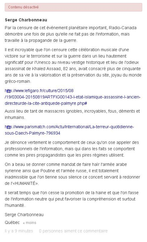 Le concert à Palmyre... un événement censuré à Radio-Canada :