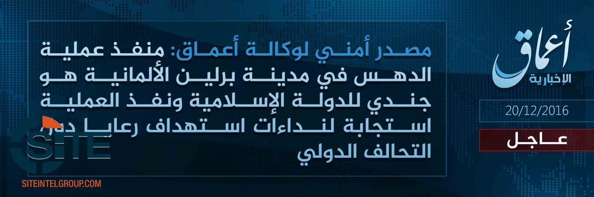 L'agence de presse et de propagande Amaq a revendiqué l'attaque au camion de Berlin. 55 j'aime