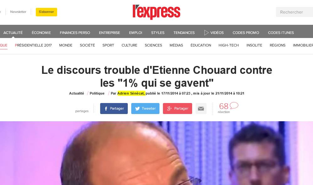 Vous avez dû avoir connaissance de Décodex, le nouveau moteur de recherche proposée par Le Monde. Cet outil, qui attribue des bons ou mauvais points aux médias, fonctionne sur une base de donnée conçue par deux personnes et c'est l'une d'entre-elle qui nous intéresse : Adrien Sénécat. Pourquoi lui ? Ce n'est pas tant parce qu'il est un ancien de BuzzFeed, un journal niveau maternel, non. Ce qui m'alarme là dedans, c'est qu'il a écrit ceci : lexpress.fr