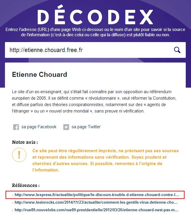 Le Vilain Petit Canard a également fait 2 articles sur le sujet : http://www.levilainpetitcanard.be/articles/actu/decodex-quand-le-monde-se-fait-inquisiteur_821847835 Et : http://www.levilainpetitcanard.be/articles/actu/decodex-sous-le-capot_1461042316