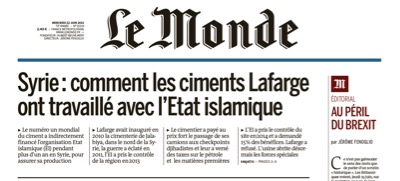 Les pseudos révélations du Monde ont été organisées de mèche avec Lafarge-Holcim pour détourner les regards de l'opinion publique et des juges vers un point de détail : fallait-il ou non accepter de se faire rançonner par Daesh.