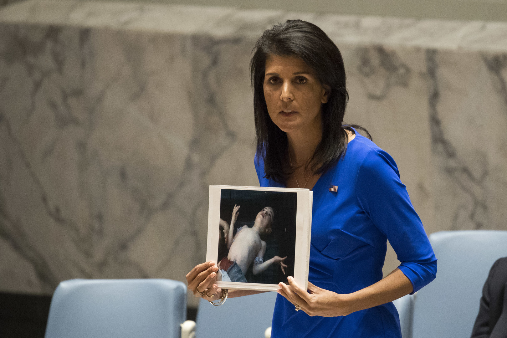 La photo reprise par Libération est par ailleurs la même que Nikki Haley, représentante américaine permanente aux Nations unies, avait brandie devant le Conseil de sécurité afin d'accabler le gouvernement de Bachar el-Assad.