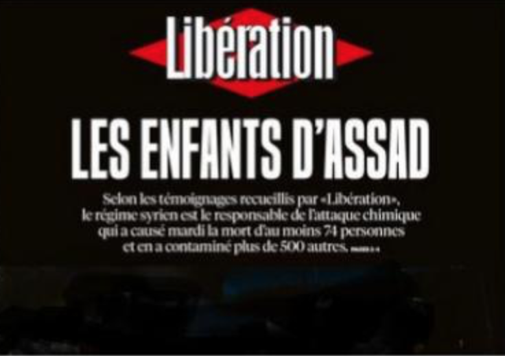 Après l'attaque prétendument à l'arme chimique effectuée par le régime d'Assad dans la ville de Khan Cheikhoun, Libération mène une propagande anti-Assad et antirusse afin de préparer l'opinion à une guerre de l'OTAN avec la Syrie et la Russie.