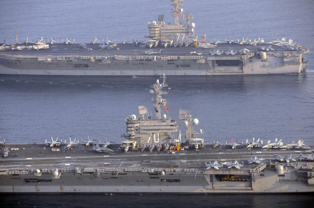 Ce groupe aéronaval comporte le porte-avions Carl Vinson, son escadron aérien, deux destroyers lanceurs de missiles et un croiseur lanceur de missiles. Alors qu'il devait initialement aller faire escale en Australie, il a pris la route du Pacifique ouest depuis Singapour.