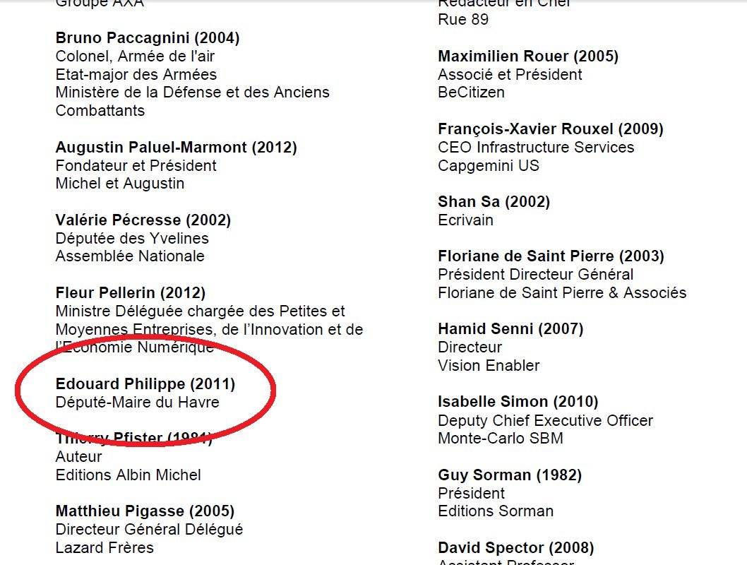E. Macron comme E. Philippe sont tous les deux passés par le formidable programme Young Leaders qui lave le cerveau des futurs dirigeants, des économistes et des journalistes. La propagande atlantiste, l''OTAN, la mondialisation économique, les guerres économiques, la marchandisation du vivant sont au menu de ce sympathique petit groupe d'amis passionnés, entre autres, par l'argent, le vol des matières premières, le sang et le commerce des oeuvres abstraites...