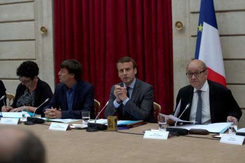 Emmanuel Macron, Nicolas Hulot et Jean-Yves Le Drian ont rencontré les ONG écologistes jeudi 6 juin.
