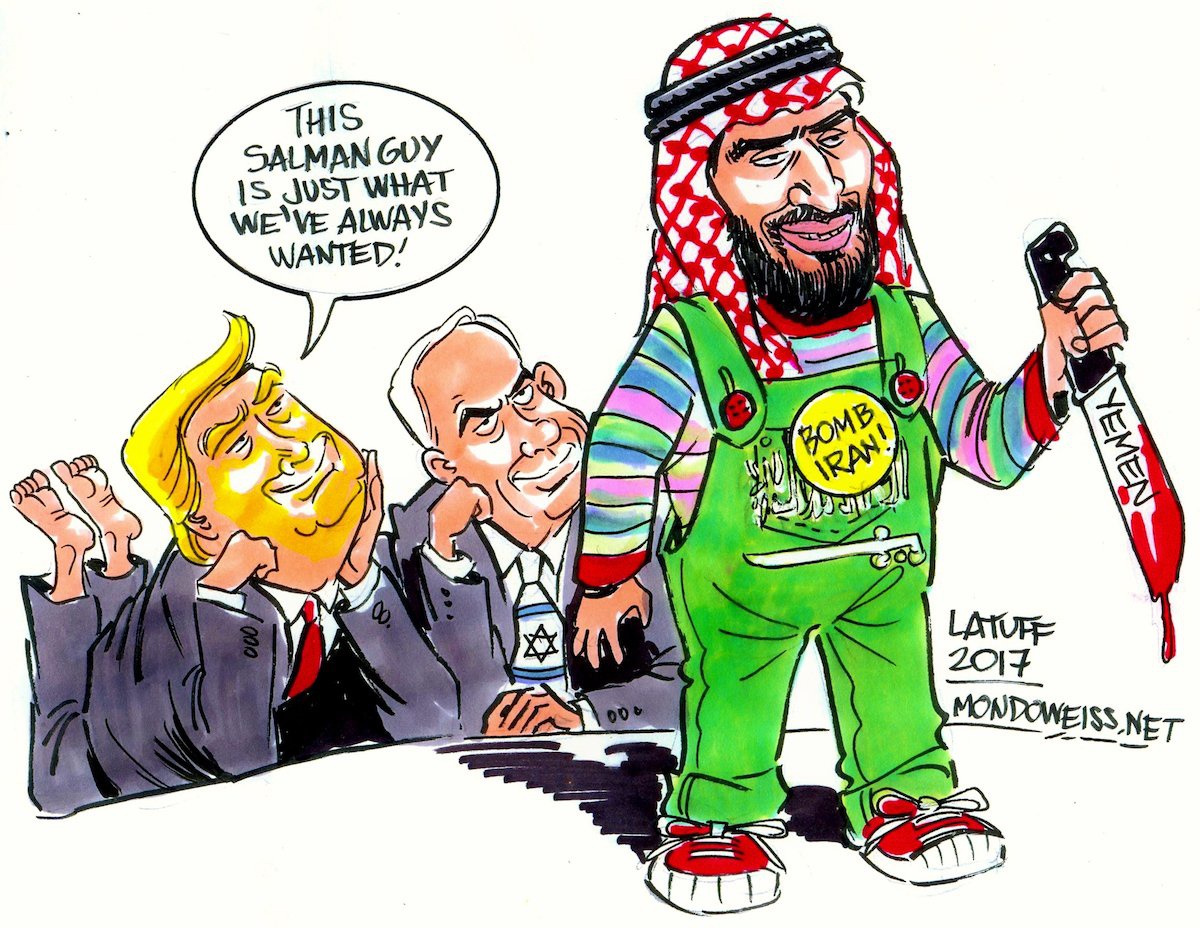 - Hier, un prince bouffon** de la famille al-Saud a remplacé un autre prince bouffon de la famille al-Saud pour remplacer le vieux roi de la famille al-Saud qui va bientôt être débarqué. Ceci, dans un pays qui porte le nom de la famille al-Saud. On est quasiment certain que cela va se passer ainsi. Le prochain dictateur-roi Mouhammad bin Salman bin Abdulaziz Al Saud, le gars qui a une dette publique, est porté aux nues dans les médias américains. Ce n'est pas étonnant. Il a beaucoup d'argent et aucune idée de sa valeur. Il a payé 500 millions d'euros un navire usagé qui n'avait coûté, neuf, que 300 millions d'euros, il y a six ans. Il va distribuer son argent ici ou là chaque fois qu'un journaliste écrira un bel article sur lui. Si le ou la journaliste est vraiment bon(ne), il ou elle touchera un pot de vin à la faveur d'un contrat d'armement garanti par la CIA avec les cheiks du Golfe. Bin Salman n'est pas très intelligent. Il est allé en Israël et est en contact permanent avec les responsables israéliens. Son programme de développement pour l'Arabie saoudite, basé sur l'austérité, a été élaboré par des consultants de McKinsey et a donc de grandes chances d'échouer. Avec son positionnement anti-iranien extrémiste, il fait l'effet d'une simple marionnette américo-israélienne.