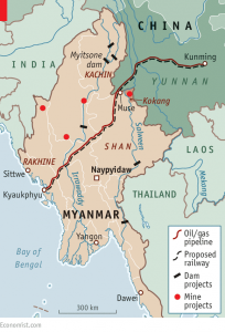 L'opposition, sous la forme d'ONG locales financées par l'argent du Département d'Etat US, ou les violences secrètement appuyées par les Etats-Unis et leurs intermédiaires, ont systématiquement tenté de troubler les projets d'infrastructures chinois à travers le monde, y compris au Myanmar. Dans ce pays, les barrages de fabrication chinoise se heurtent à l'opposition de réseaux d'ONG financés par les Etats-Unis. Des groupes de militants, accusés d'avoir reçu le soutien des Etats-Unis, ont attaqué des projets chinois à travers tout le pays. Et le conflit actuel dans l'Etat de Rakhine, alimenté des deux côtés par les Etats-Unis, menace non seulement de faire dérailler les futurs projets chinois, mais pourrait aussi servir de prétexte pour positionner des forces occidentales au Myanmar, un pays frontalier de la Chine.