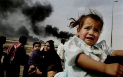 Après la première guerre du Golfe en 1991, l'Irak a été soumis à un très dur embargo qui a provoqué en dix années environ un millions de morts, dont environ un demi-million d'enfants. Massacre provoqué, en plus de la dénutrition chronique et du manque de médicaments, par la carence d'eau potable et les maladies infectieuses et parasitaires qui en découlent. Les Etats-Unis -montrent des documents découverts plus tard- ont mis en acte un plan précis : d'abord bombarder les sites d'épuration et les aqueducs pour provoquer une crise hydrique, puis empêcher avec l'embargo que l'Irak puisse importer les systèmes d'épuration. Les conséquences sanitaires étaient clairement prévues depuis le début et programmées de façon à accélérer l'effondrement de l'Irak. D'autres victimes seront provoquées, dans les années suivant la première guerre, par les projectiles à uranium appauvri, massivement utilisés par les forces étasuniennes et alliées dans les bombardements aussi bien aériens que terrestres.