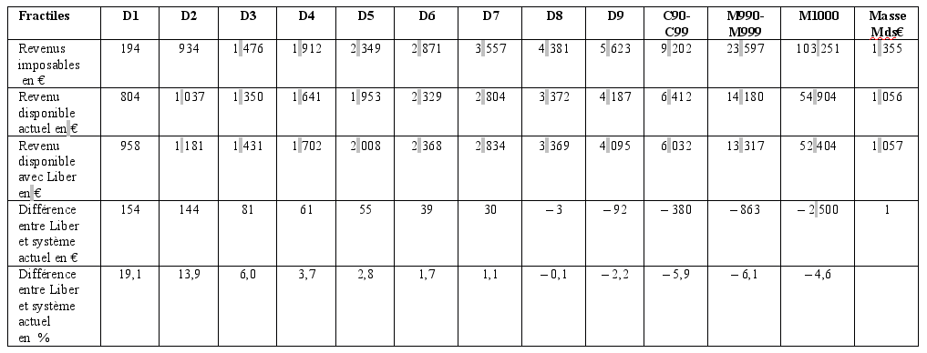 Tableau de simulation extrait de Marc de Basquiat, « Le liber, en réponse à une lecture de Denis Clerc », L'Économie politique, n° 71, juillet 2016, p. 85-95.