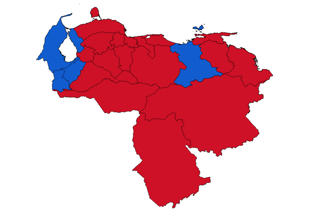 L'opposition a perdu les trois régions gagnées en 2012 (Miranda, Amazonas et Lara) et en a gagné cinq autres (Anzoátegui, Mérida, Nueva Esparta, Táchira et Zulia), avec trois de celles-ci à la frontière de la Colombie, soulevant des craintes de voir l'activité paramilitaire augmenter. La participation totale a été de 61%, en comparaison des 54% cinq ans plus tôt, et le PSUV a récolté 54% des votes, soit environ 5,6 millions de votes. Ceci marque un revirement complet par rapport aux législatives de 2015. Cela démontre aussi que le noyau central du chavisme reste très fort et ceci moins grâce à ses actions cohérentes qu'à l'incapacité de l'opposition à mobiliser ses supporters.