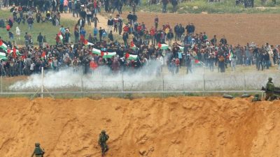Vendredi, des dizaines de milliers de Palestiniens se sont rassemblés près de la frontière militarisée avec Israël pour protester contre l'expropriation israélienne des terres palestiniennes et revendiquer le droit des réfugiés palestiniens à retourner dans leur patrie, les troupes israéliennes et les tireurs d'élite ont ouvert le feu, tuant au moins 16 personnes et en blessant environ 1400 de plus.