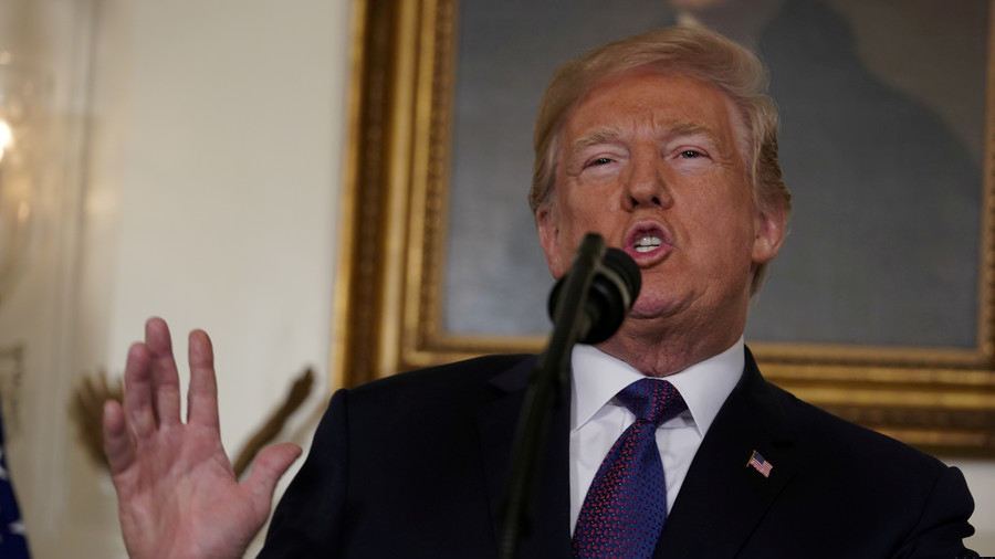 Le président américain Donald Trump fait une déclaration sur la Syrie à la Maison Blanche à Washington, aux États-Unis, le 13 avril 2018. © Yuri Gripas / Reuters