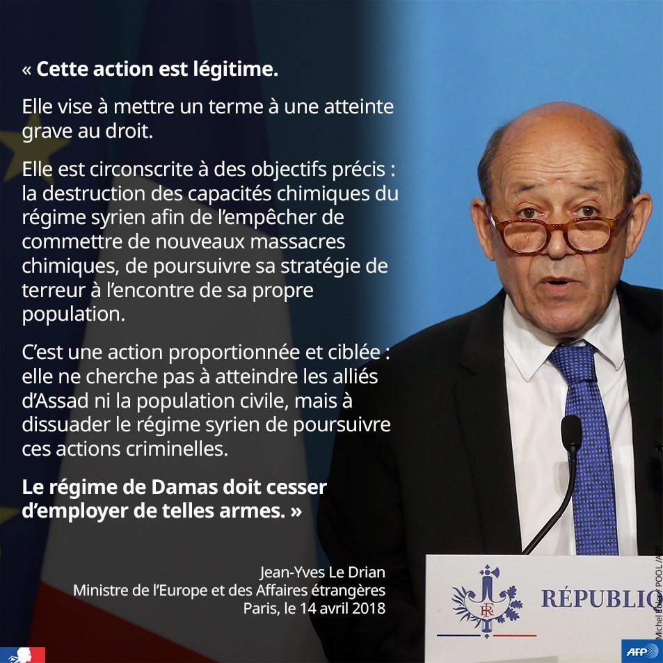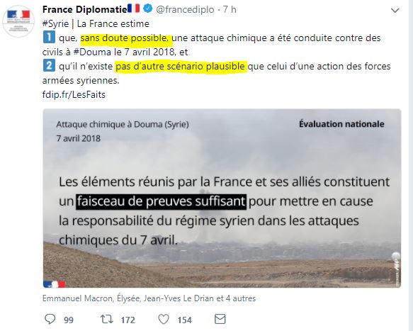 Mais bon revenons à l'affaire syrienne. La France a donc décidé de se ranger sur les vociférations irresponsables de Donald Trump :