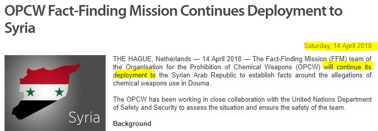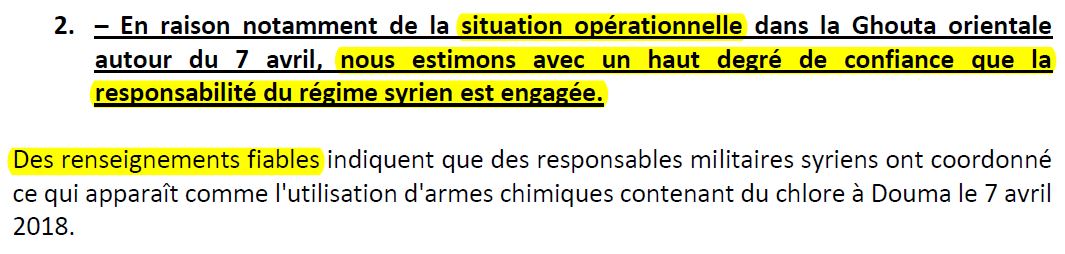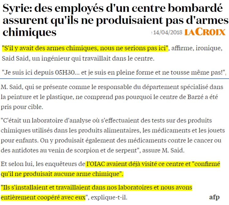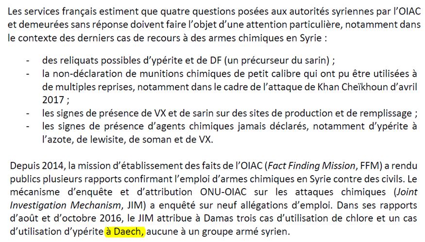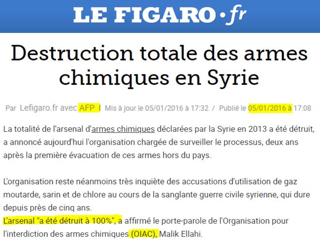 Rappelons que l'OIAC a déclaré en 2016 que l'arsenal chimique syrien avait été " détruit à 100 % " !