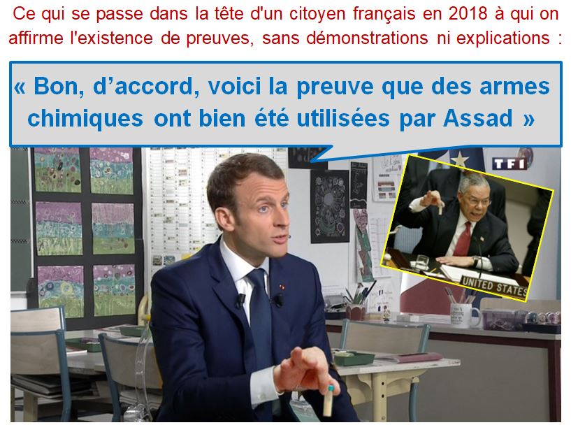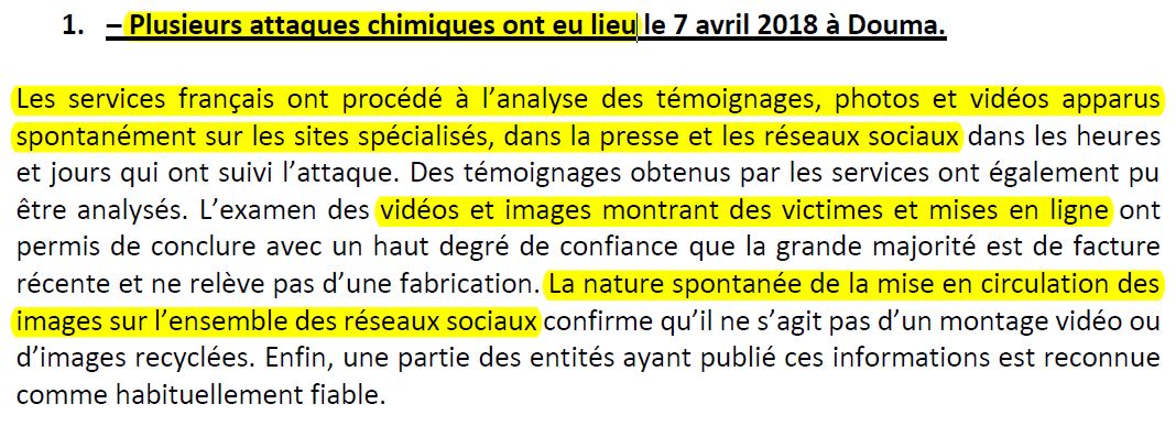 Très bien, donc la source, ce sont des vidéos de "sites spécialisés" (dans les attaques chimiques ?), "la presse" et... "les réseaux sociaux".