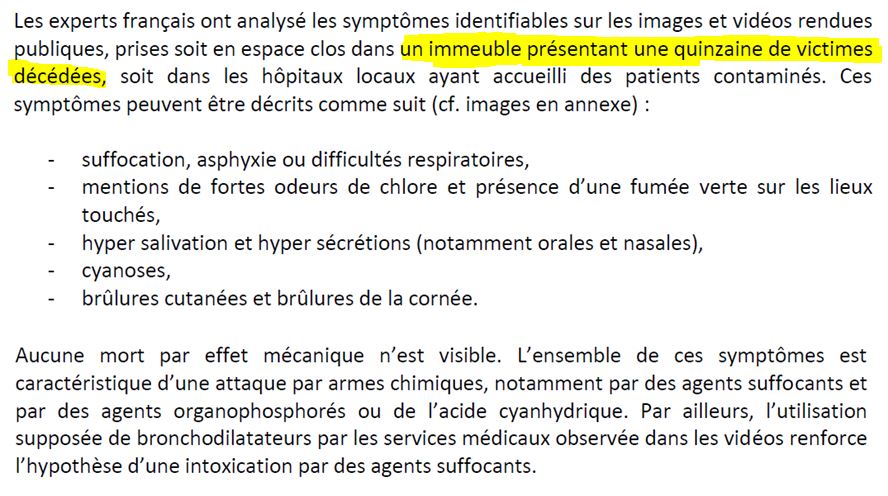 Sur les 40 morts, 15 l'auraient donc été dans un seul immeuble.Et ainsi se termine ici la partie "prouvant" la réalité de l'attaque chimique.