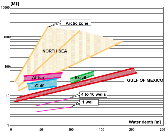 (pour une exploitation à terre, les coûts sont de 30% à 50% inférieurs).