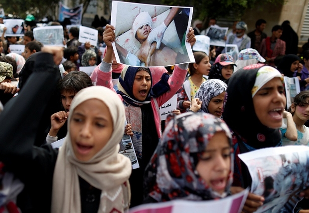 Mourners shouted slogans against Saudi Arabia and its ally and key arms supplier, the United States. "America kills Yemeni children," read several banners.