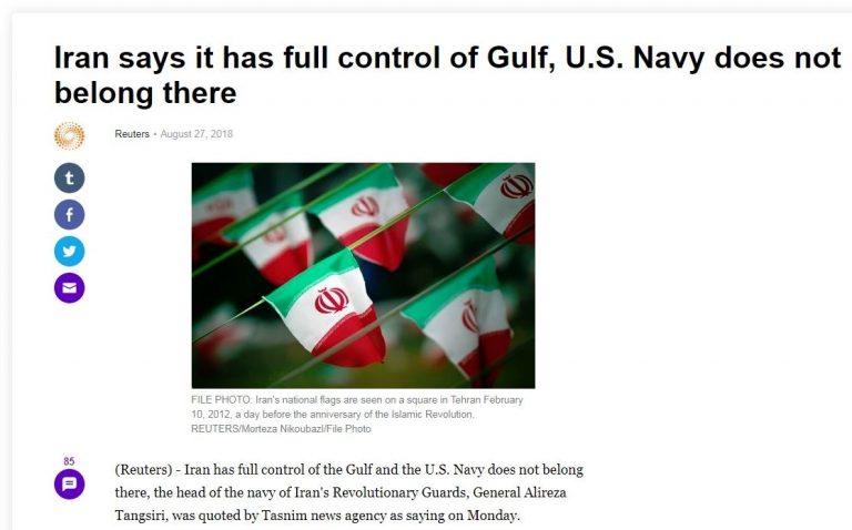 FRN a été informé que le chef des gardes révolutionnaires iraniens, le major-général Mohammad Ali Jafari, a déclaré il y a quelques heures à peine que l’Iran avait entièrement libéré le Golfe et le détroit d’Ormuz de l’assujettissement étranger et hostile. L’Iran menait des » exercices » dans la région, depuis la mi-juin, avec l’appui de la marine chinoise, quand tout à coup ces exercices sont devenus » opérationnels « .