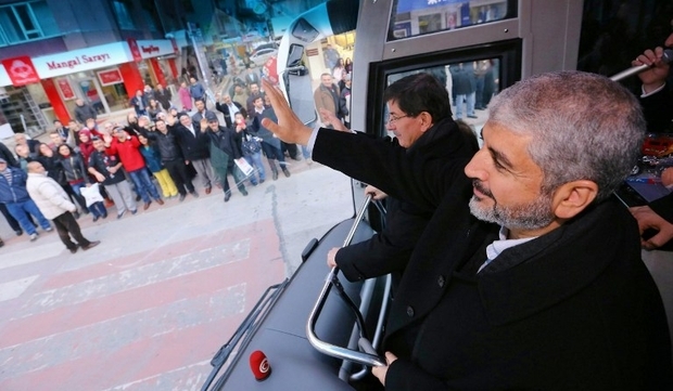 Senior Hamas leader Khaled Mashaal greets people in the city of Konya during a visit to Turkey in 2015 (AFP)