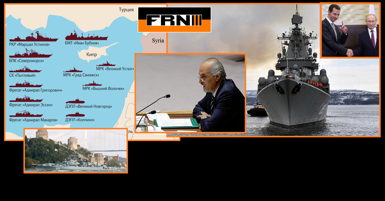Il semblerait donc que, conformément à la stratégie diplomatique et militaire combinée de la Russie, il faudrait étendre les ouvertures diplomatiques, tout en se préparant simultanément au scénario du pire. Ainsi, nous voyons la formation navale conçue au départ pour défendre la Syrie contre les attaques franco-américaines, comme un ensemble d' »exercices » apparemment sans rapport et inoffensifs.