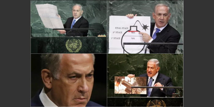 Le discours de l’Assemblée générale des Nations Unies de Netanyahu, jeudi, comportait de manière prévisible les accessoires et les visuels familiers condamnant l’Iran à propos de ce que le Premier ministre israélien dit être un programme nucléaire continu qu’il cache aux yeux du monde.