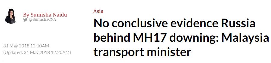 MH 17 : Pas de preuve formelle de la responsabilité de la Russie selon le Ministre malaisien des transports