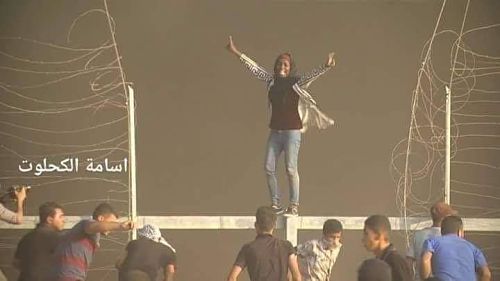 * Itaf Saleh, 32 ans, alors qu'il essayait de traverser les barbelés de l'occupant, au nord de la bande de Gaza. (8/9) ;