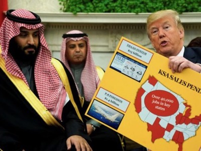 Recevant le prince héritier saoudien, « MBS », le président Trump avait récapitulé les commandes dispendieuses de Riyad à son pays et conclut en souriant : « C'est dans vos moyens, n'est-ce pas ? ».