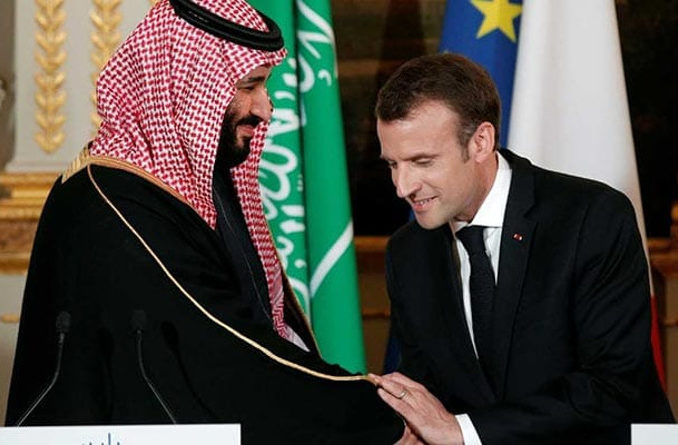 Macron, ici en pleine séance de flagornerie devant le dictateur saoudien, se comporte avant tout en bon commercial pour le compte de l'industrie française d'armements - Photo : Archives