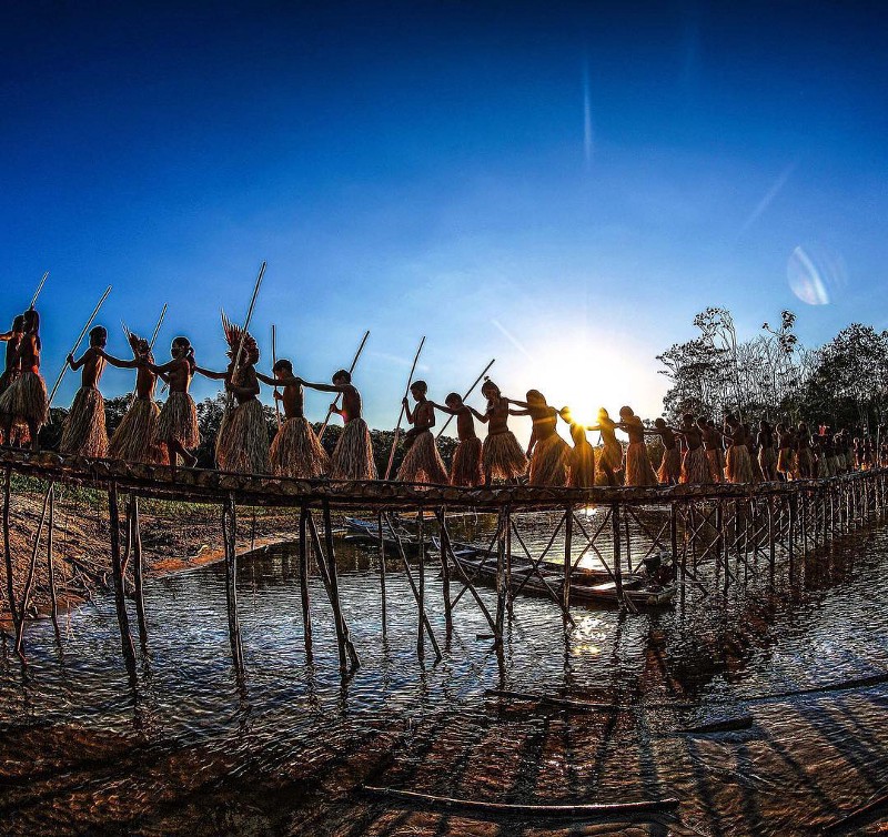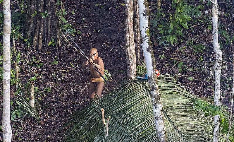 Photo de Ricardo Stuckert, en 2016, d'une communauté autochtone jamais contactée auparavant. La photo a été prise lorsque le photographe a survolé une zone d'Acre avant de se rendre au village de Caxinauá, où il a réalisé une séance photo pour le livre Índios Brasileiros. Disponible sur la BBC.