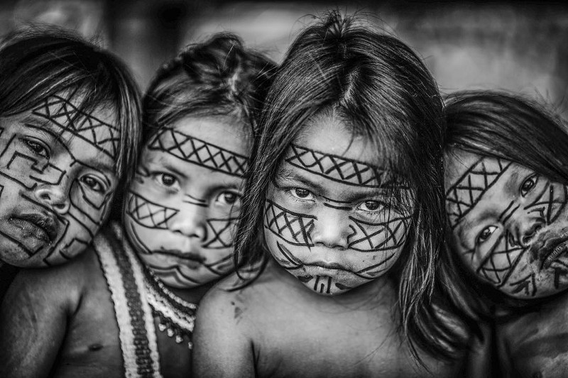 Enfants Kaxinawá, dans le village d'Água Viva, à Acre. Photo de Ricardo Stuckert (voir son portfolio de photos ici)