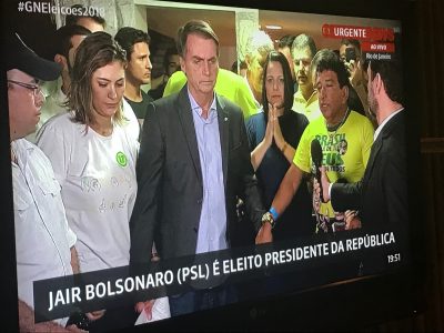 Après l'annonce de sa victoire Jair Bolsonaro a lu un discours en se disant pour « la démocratie et la liberté » et pour le respect de la Constitution. Mais Dieu aura-t-il un rôle à jouer dans ce gouvernement? Bolsonaro a mentionné plusieurs fois le nom de « Dieu »,avec les mêmes expressions utilisées lors de sa campagne, comme « Dieu au dessus de tout. » Le nouveau président (évangélique) a prononcé son discours de sa maison à Barra Tijuca à Rio de Janeiro en commençant ainsi :