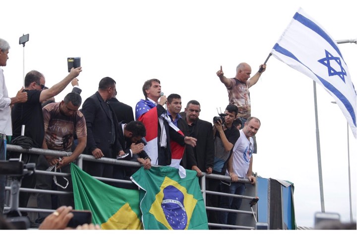 Jair Bolsonaro entretient des liens politiques et religieux très fort avec Israël et s'est même fait baptiser dans les eaux du Jourdain. Il a plusieurs fois rappelé son attachement à la «démocratie israélienne» qu'il considère comme un exemple à suivre. Ce faisant, il se démarque de la politique extérieure du PT qui avait reconnu l'Etat de Palestine et rappelé son ambassadeur en Israël pour protester contre l'opération Bordure Protectrice en 2014.