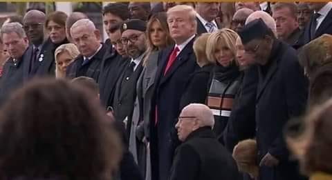 L'horreur d'aujourd'hui célèbre l'horreur d'il y a un siècle. Au premier plan, le président tunisien, Beji Caid Essebsi, 91 ans, s'apprêtant à tenir son discours le 11 novembre à Paris
