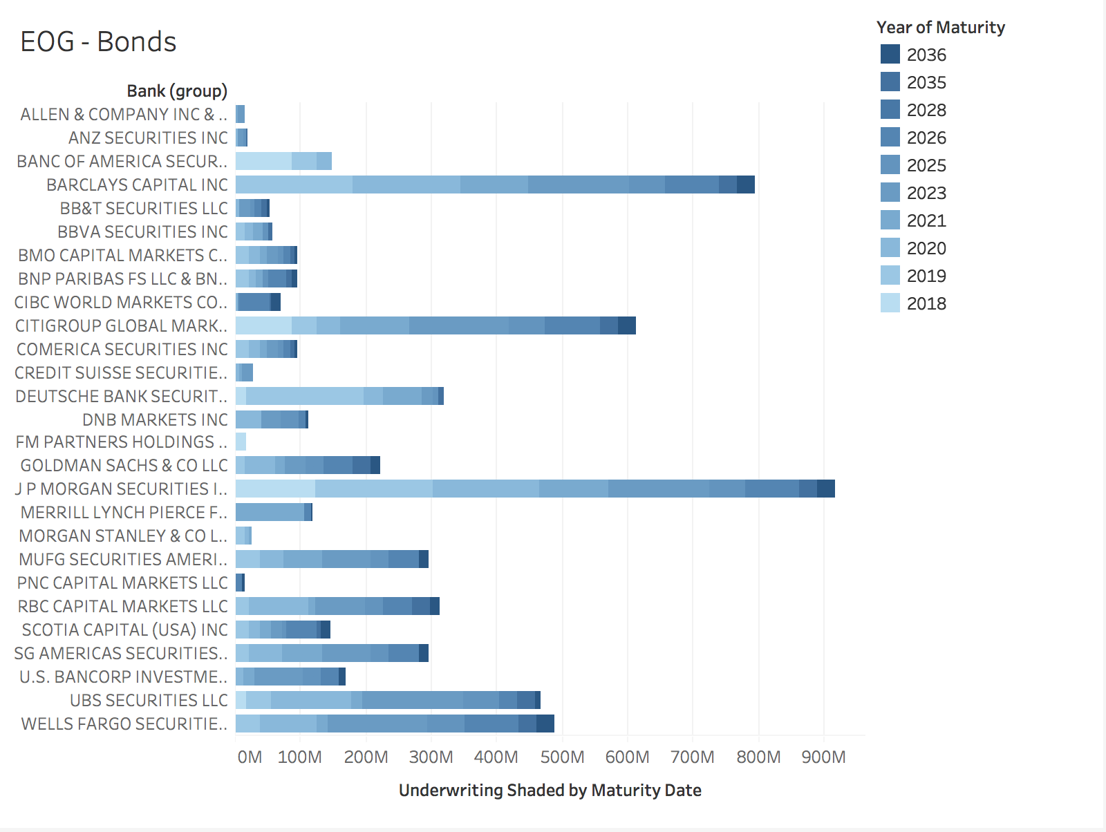 Comme le montre ce graphique sur les banques qui prêtent de l'argent à la société de shale EOG Resources, sous forme de renflouement, alors que tous les grands acteurs de Wall Street sont sur le coup, JP Morgan a pris les plus gros paris.