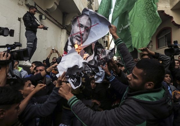 Photo: Palestinian demonstrators burn pictures of former Israeli Defence Minister Avigdor Lieberman in Gaza on 14 November 2018 (AFP)