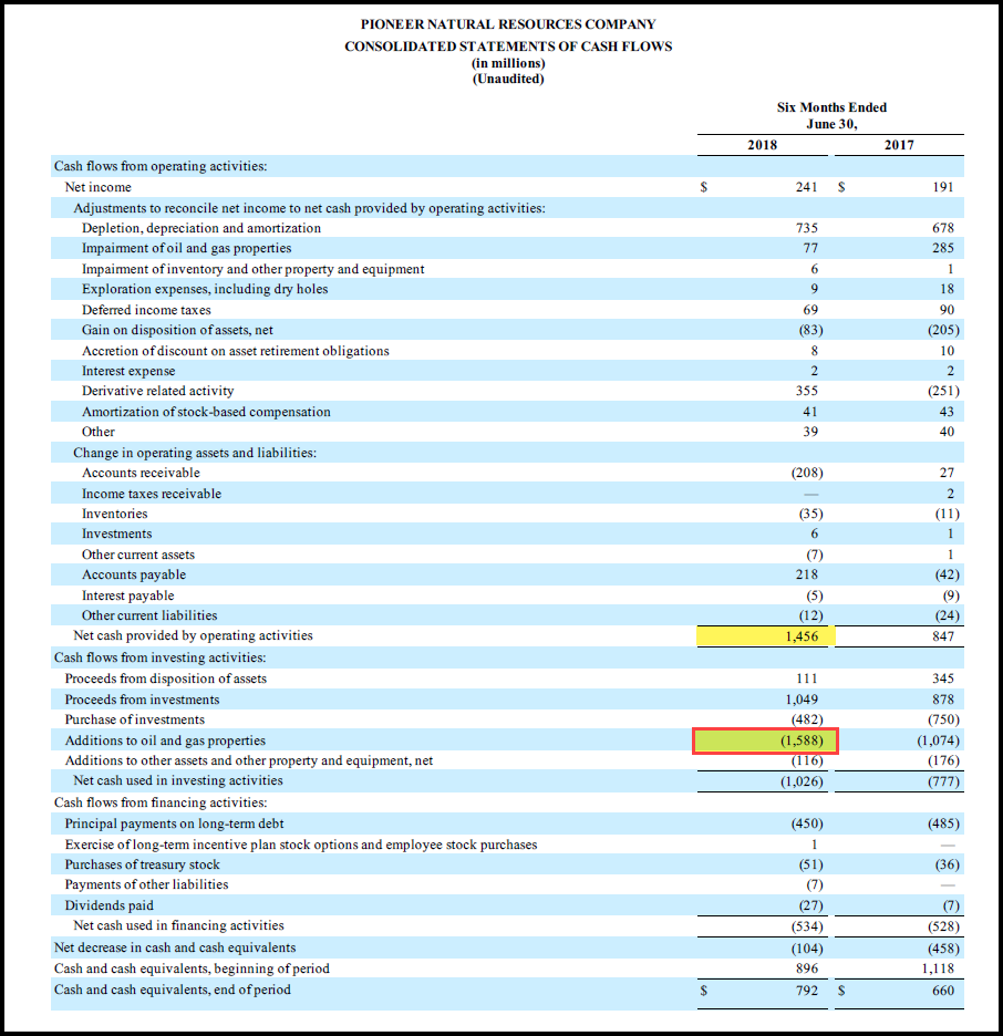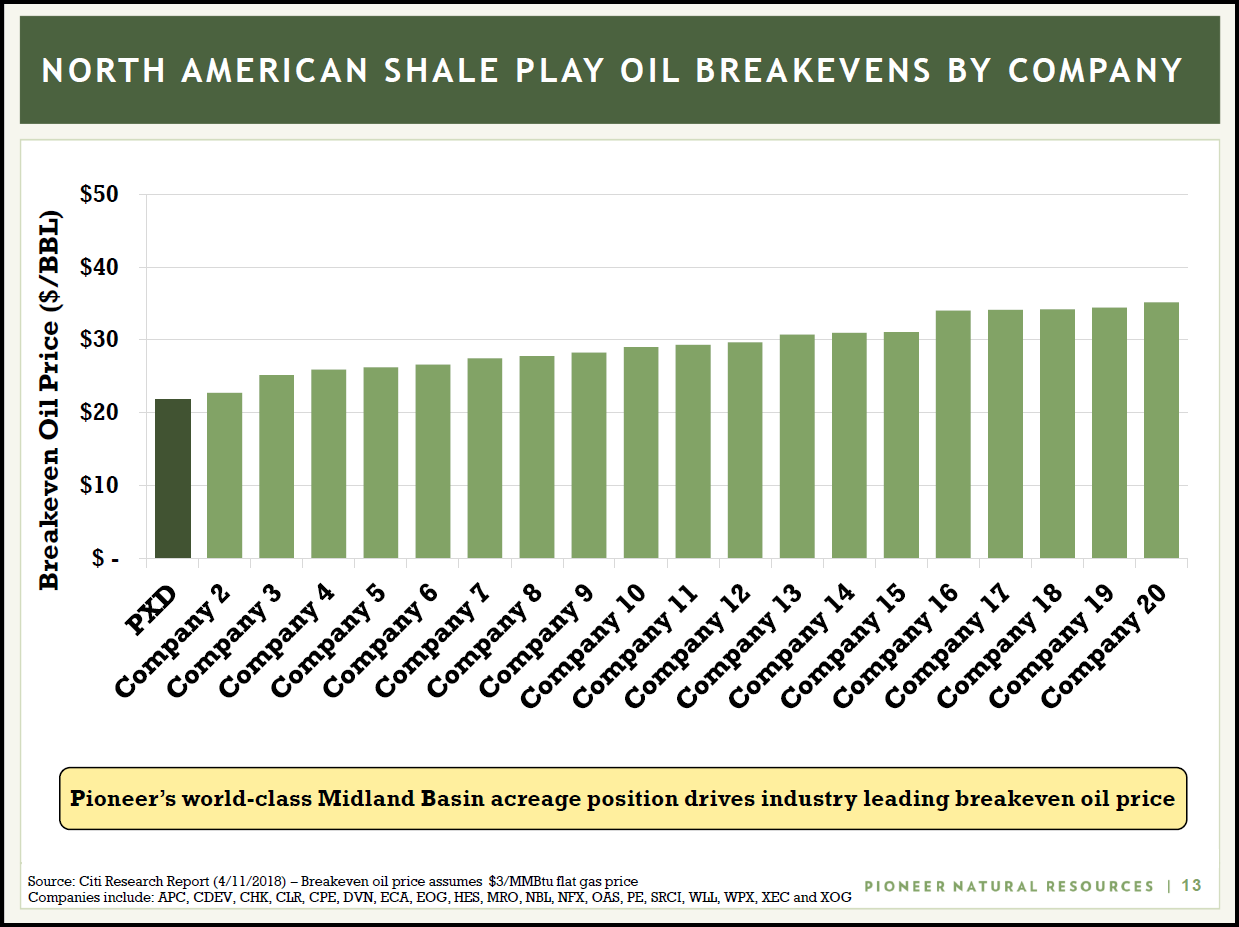 Le public et les investisseurs doivent comprendre que les « coûts au seuil de rentabilité du pétrole » ne comprennent pas les dépenses en capital. Et selon le communiqué de presse du deuxième trimestre de 2018 de Pioneer, la société prévoit de dépenser 3,4 milliards de dollars en dépenses en immobilisations en 2018. La majorité des dépenses en immobilisations sont consacrées au forage et à l'achèvement de puits de schiste horizontaux.