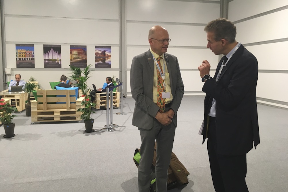 Le climatologue belge Jean-Pascal van Ypersele et l'analyste de Carbon Tracker Kingsmill Bond.