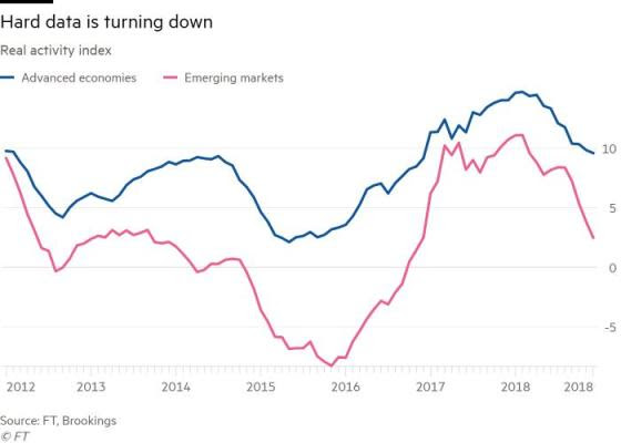 Parallèlement à l'opinion du FMI, la Brookings Institution privée a présenté son point de vue sur l'économie mondiale, concluant d'après son indice de suivi de l'activité économique que le monde était entré dans un « ralentissement synchronisé » qu'il pourrait être difficile d'inverser. L'indice de suivi Brookings-FT pour la reprise économique mondiale (Tiger) compare les indicateurs de l'activité réelle, des marchés financiers et de la confiance des investisseurs avec leurs moyennes historiques pour l'économie mondiale et pour chaque pays. Les lectures de titre ont nettement reculé à la fin de l'année dernière et sont à leur plus bas niveau pour les économies avancées et émergentes depuis 2016, année de la plus faible performance économique mondiale depuis la crise financière.