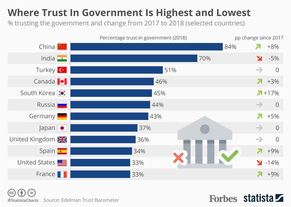Les Chinois eux-mêmes sont très conscients de la rapidité avec laquelle leur bien-être matériel a augmenté. C'est probablement la raison pour laquelle les niveaux de confiance dans le gouvernement chinois sont les plus élevés au monde.