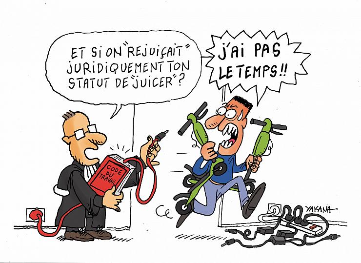 « Je fais mon emploi du temps comme je veux, il y a juste l'obligation de déposer les trottinettes entre 5 et 7 heures », explique Yanis. Un travail synonyme de liberté pour cet ancien militaire, rompu à la discipline, ajoutant : « Avec Lime c'est toi qui vas chercher ton argent, avec Uber on te dirige vers les clients, on te force. » Une liberté toutefois très limitée par l'application, la pierre angulaire de toute activité « uberisée ». Ainsi, un juicer n'atteignant pas son plafond journalier peut voir ce dernier diminuer, et la paye en conséquence... Sans oublier les problèmes informatiques possibles : « J'ai eu un bug qui m'a empêché de récupérer les trottinettes à 3 euros pendant 5 jours. »