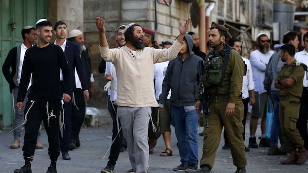 Colons israéliens paradant, avec la protection de l'armée d'occupation. BETAR et LDJ ne sont pas en reste