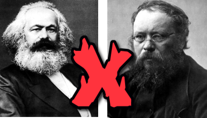 Karl Marx le contacte, mais Proudhon n'adhère pas aux théories de Marx, dont il pressent la dérive totalitaire, et les deux hommes rompent rapidement.
