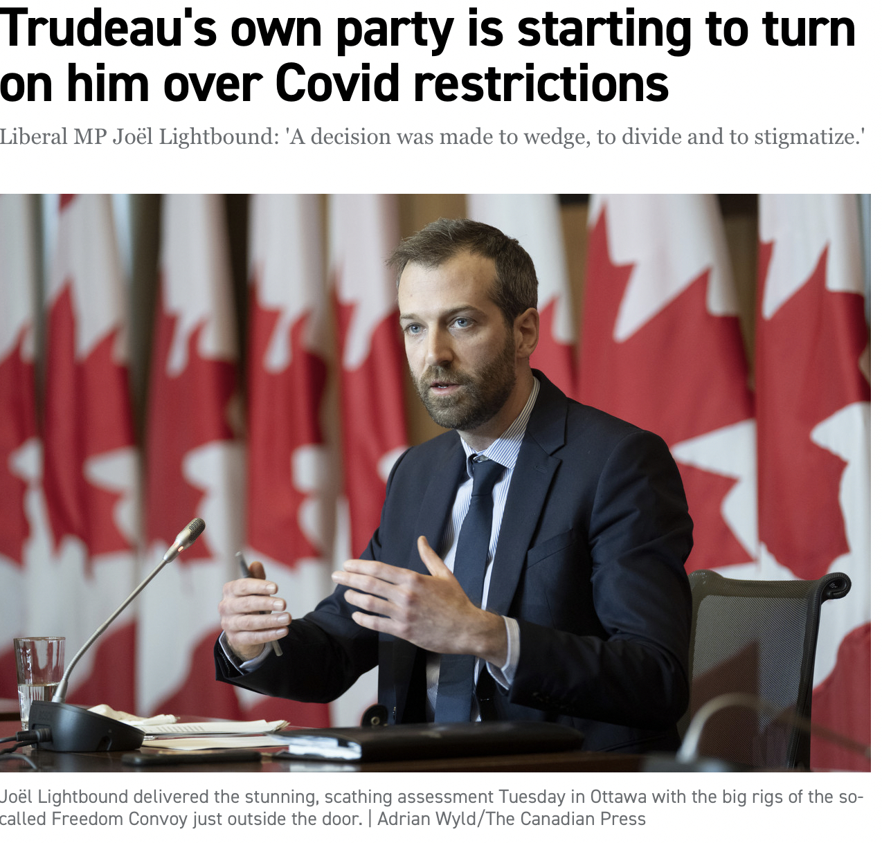 Un député du propre caucus de Justin Trudeau accuse le Premier ministre de diviser et de stigmatiser les Canadiens en politisant les mandats de vaccination et les restrictions Covid-19. (Politico)